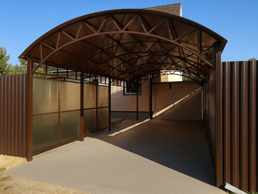 Клиент может заказать навес для автомобиля из поликарбоната в типовом исполнении или в виде индивидуального проекта. Все конструкции адаптируются под небольших или больших участков, а также сочетаются с архитектурой дома. Возможность купить навес для автомобиля из поликарбоната недорого зависит от выбранной формы, толщины покрытия и длины пролета.